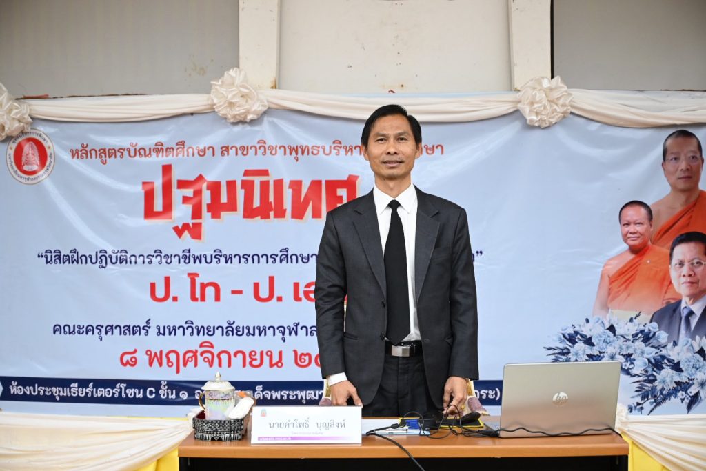 วันเสาร์ที่ 8 พฤศจิกายน พ.ศ. 2568 ภาควิชาบริหารการศึกษา สาขาวิชาพุทธบริหารการศึกษา หลักสูตรบัณฑิตศึกษา คณะครุศาสตร์ มหาวิทยาลัยมหาจุฬาลงกรณราชวิทยาลัย จัดโครงการ “ปฐมนิเทศการฝึกปฏิบัติการวิชาชีพบริหารการศึกษา ประจำปีการศึกษา 2568” ณ ห้องประชุมเธียเตอร์ อาคารเรียนรวมโซนซี